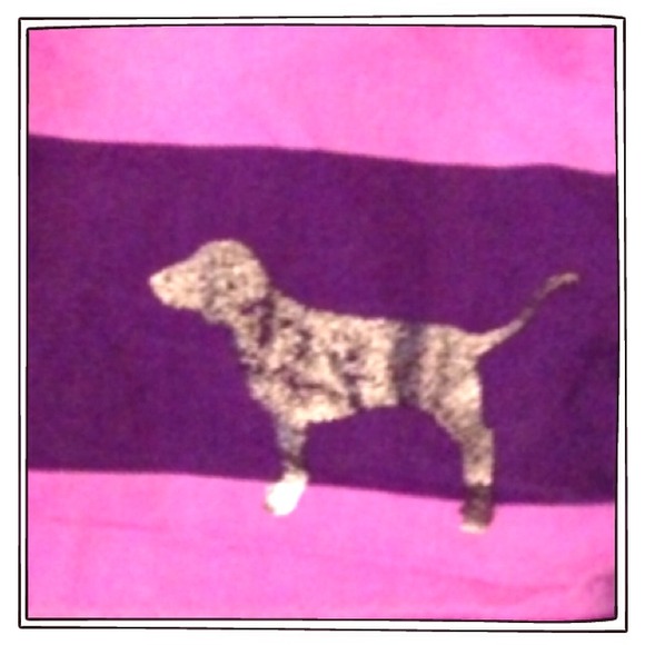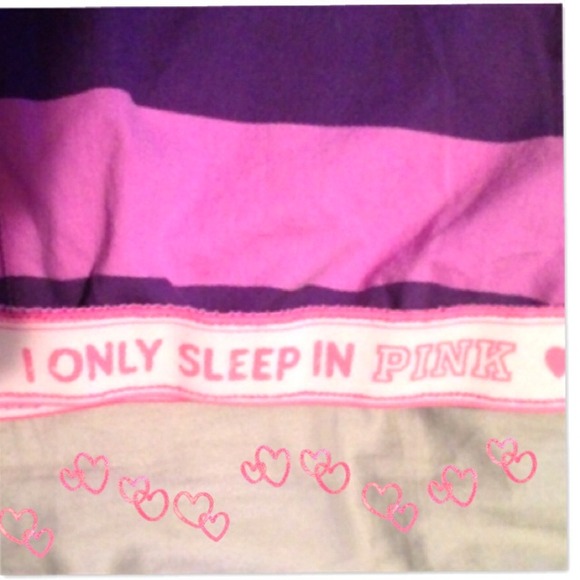 Super cute striped shorts with elastic waistband that reads “I ONLY SLEEP IN PINK” when folded over. Nothing wrong other than the slight cracking of the dog on them!