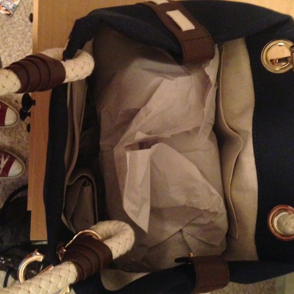 Super cute navy blue marina shoulder handbag. It’s pretty big to fit everything you may need.