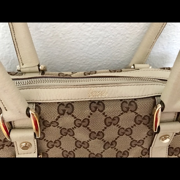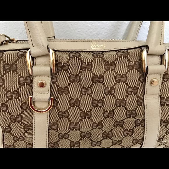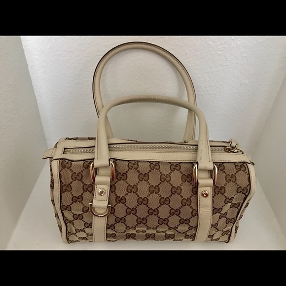 GUCCI Handbag(Pre-owned & Authentic)**** PLEASE PAY ATTENTION TO THE LAST PIC for its condition. Width (inch) : 11.0 inchHeight (inch) : 7.08 inch(approx)Depth (inch) : 3.93 inch(approx)Handle (inch) : 18.9 inchColor : x WhiteMaterial :CanvasCome with : Dust BagCountry of Manufacture : ItalyCode, Number etc. : 130942 1669