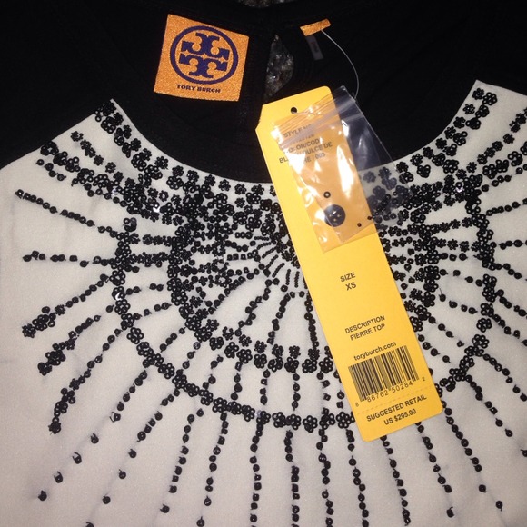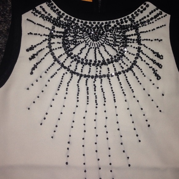 Beautiful black and white Tory Burch beaded top. This sleeveless top is a very classy top with gorgeous detailed beading across the front of the top. Very stylish. NWT