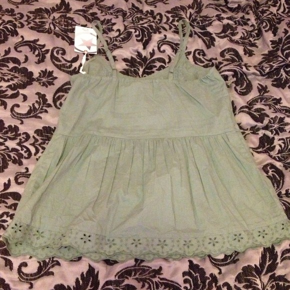 Cute Converse top with tags. Top is a bit darker in person than in the photo. Not your ordinary top; adjustable strap for a perfect fit, great detailing in the chest area (photo 3) and at the bottom. Wear with a cardigan, under a denim shirt or jacket. Can also fit a medium.