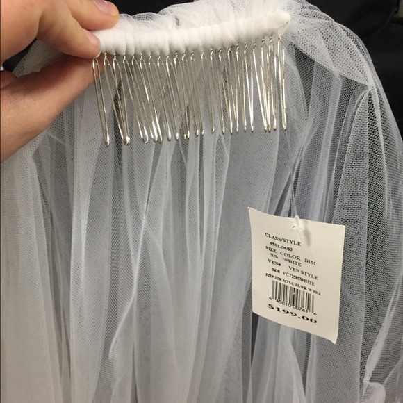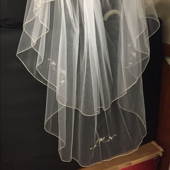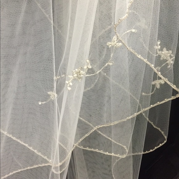 Brand New! Gorgeous 2 tiered fingertip length David’s Bridal Veil with soft beading. VCT258SWHITE. Asking price is firm. Thanks for looking!