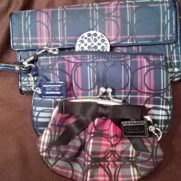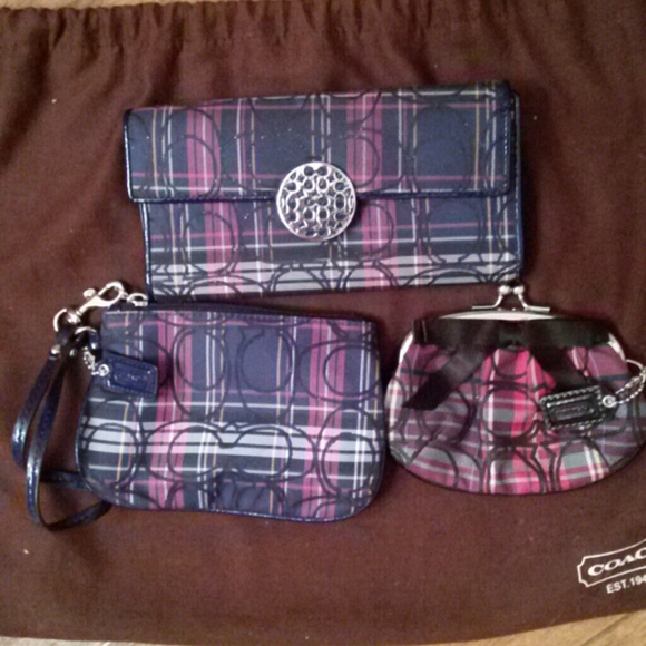 Be the first to review “4-pcs set.Coach Set.Navy Blue w/multi plaid.EUC” Cancel reply