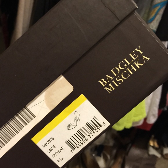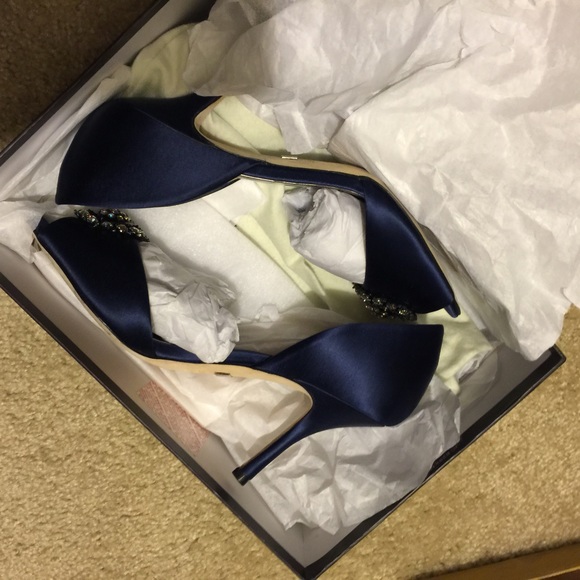 Navy blue Badgley Mischka pumps. Heel is about 2.5 in. Only wore once in my wedding. I have the original box and dust bag to go with them.