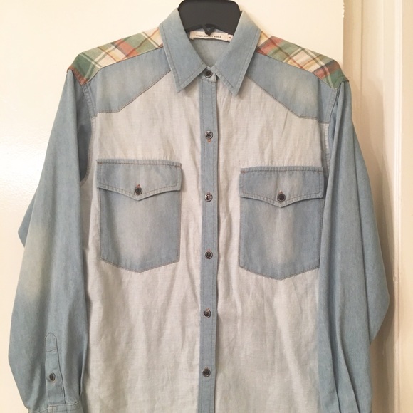 Authentic Isabel Marant Guan Denim Shirts. Barely worn. Inside cuffs and back yoke contrast multi colir plaid. Great condition.