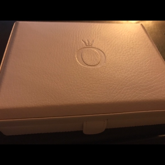 Never worn, authentic pandora bracelet with 2 stoppers, 1 purse with pink accent charm, 1 Statue of Liberty charm, 1 stiletto charm, 1 graduation cap, 2 heart spacers, 1 amethyst floral spacer,1 amethyst spacer and 1 pandora real leather cream color jewelry box.
