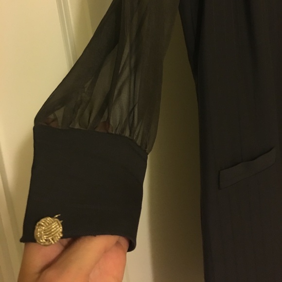 Beautiful authentic Rachel Roy dress in dark grey color.Has sheer silk organza 3/4 sleeves and beautiful buttons.This dress has barely no give at all.It needs to be worn slightly relaxed.Measures 34″ bust 30″ waist37″ length