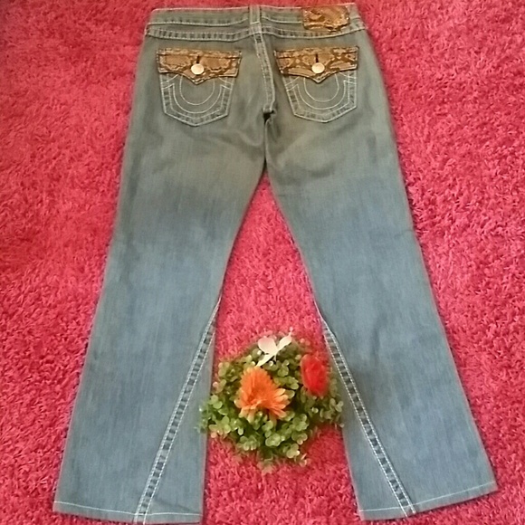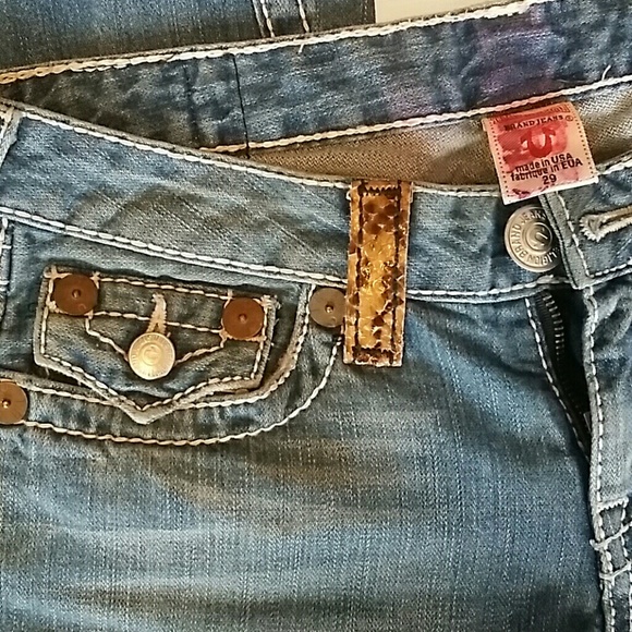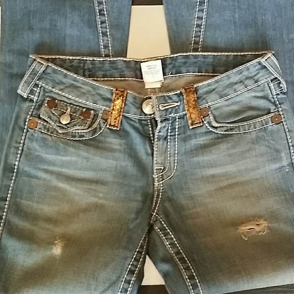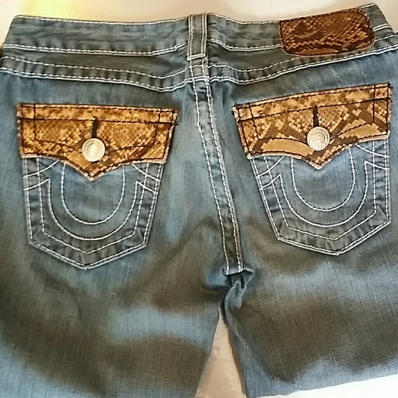 Authentic Premium Denim, True Religion Bootcut Jeans w/Real Python Snakeskin pockets and belt hoops! Size 29. Length 40 in from waist. These jeans are a rare find!