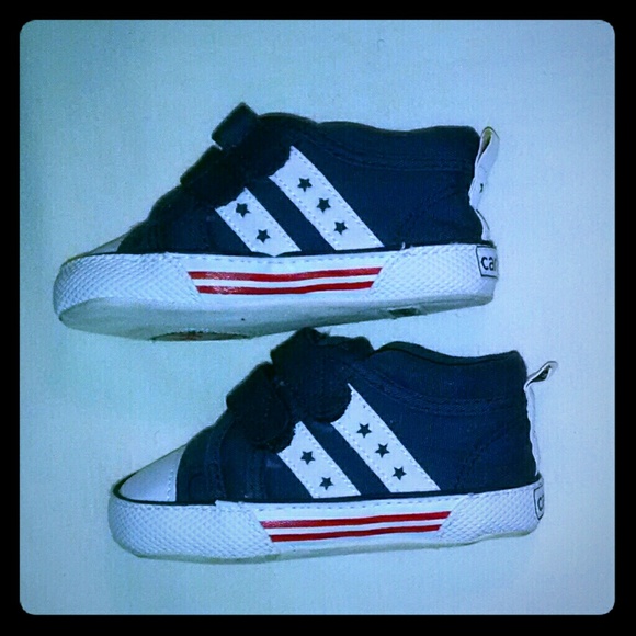 Beautifully designed baby Carter’s Velcroblue white red crib sneakers tennis shoes. They will be great for the summer and Beyond