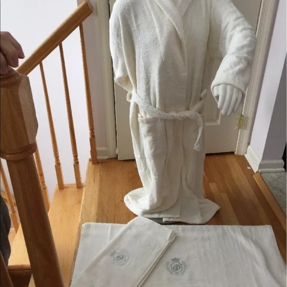 SEVIM BAMBOO Bathrobe Set of Three100% Cotton Turkish Bath Robe made in Denizli, Turkey. Soft and absorbent. Available colorscreamwhite size large ITS SOO SOFT👍👍👍Size Large.Soft and Overall Length (50.5″), Shoulder(22″), Sleeve(22″), Cuff(6″) 1 Bath Towel 59″ x 35″ 1 Hair Towel 36″ x 19″ absorbent. Color creamwhite size large Bathrobe Bath towel size 59″x34 head towel 35″x19″ Bath and head towel withembprorided logo PRICE FIRM