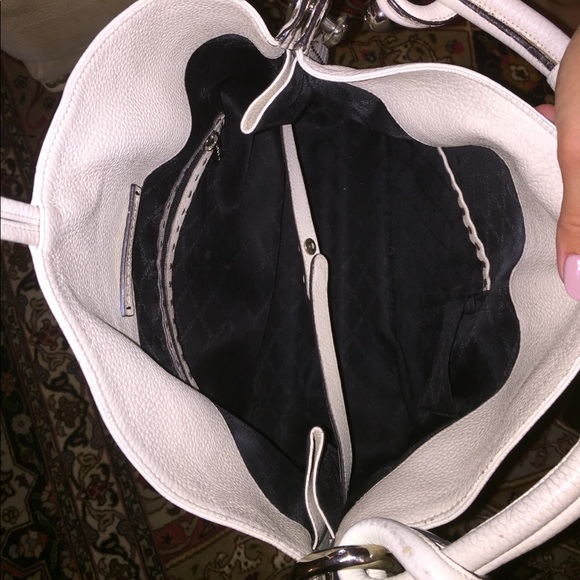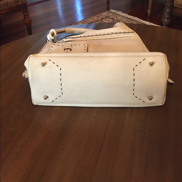 Excellent condition! Perfect cream handbag for everyday use! Silver hardware/brown stitching. Dust bag included. Will ship next day!