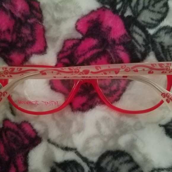 *NWOT Retail $225 Betsey Johnson Eyeglasses I purchased from LensCrafters but decided on another pair so these are just sitting waiting on lenses to be put in them! I would like to try and get back what I paid for them they are brand new still have the Betsey Johnson on lens.Arms have flowers and vines with a couple of hearts Super super cute! they are made of plastic and Metal so they’re strong to be worn as everyday eyeglasses. Cat eyes…almost!