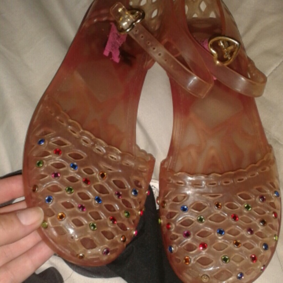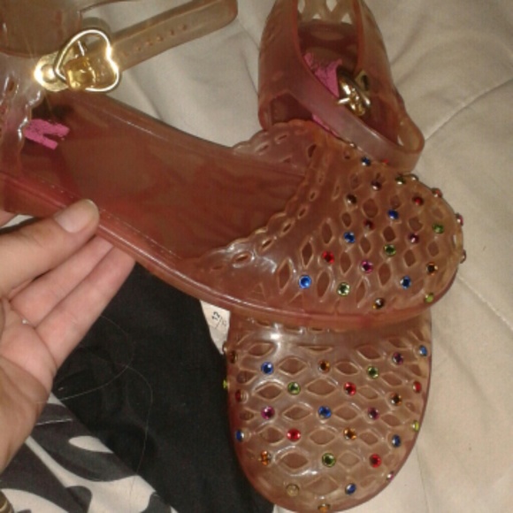 Beautiful smokey pink covered in crystals,wedge heel,vintage jelly sandles worn twice not for long trades for Jeffrey star Anastasia,dose,limited edition mac,or other cute name vrand items