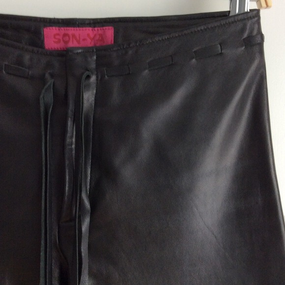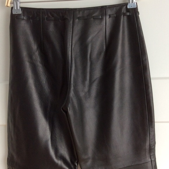 The softest black lamb skin, formfitting and comfy. Lined to knee. Purchased at an Upper West Side boutique. Medium rise, lacing detail at waist, slit at ankle, cropped length is perfect with booties. And your booty will look awesome.