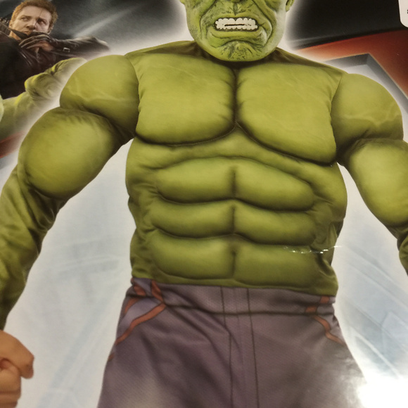 HulkBoys Costume , Includes Jumpsuit Muscle Chest with attached feet, MaskSize chartMedium. Height 50-54″, chest: 29-32″ waist:27-30″hips: 27-30″