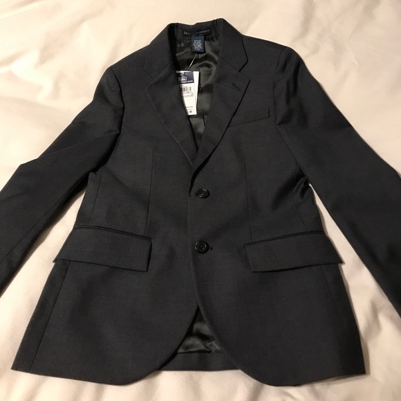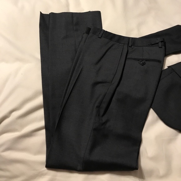 Handsome suit for your young man!Dark gray, 2 button jacket, wool suit, size 12. Never worn. Never altered. Please choose Black or Dark Gray.