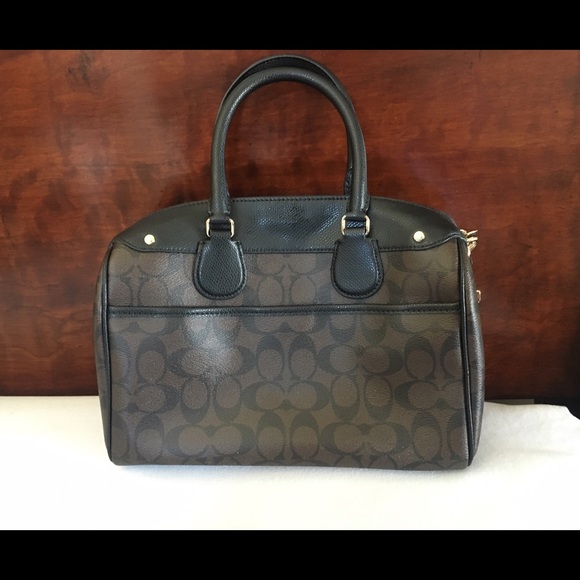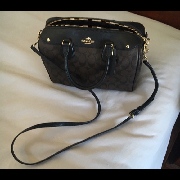 This gorgeous dark chocolate brown and black authentic Coach bag is adorable and has NEVER been used! Comes with strap as well. Also comes with matching wristlet, will be selling that separately but willing to lower price if buyer wants to buy them as a set! Amazing accessory. Willing to negotiate price