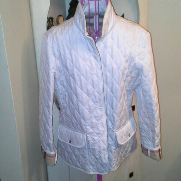 White clean Burberry jk with Burberry lining inside very cute!!!! I only used it one time….