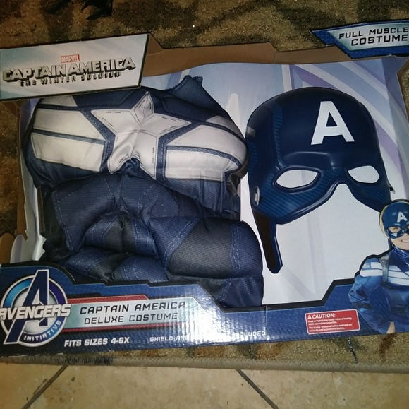 Answer the Call and Become the Ultimate Hero! The Captain America 2 Deluxe Dress Up set gives you everything you need to become Captain America. Set includes a full body, padded muscle suit and molded mask. Ages 4-6x