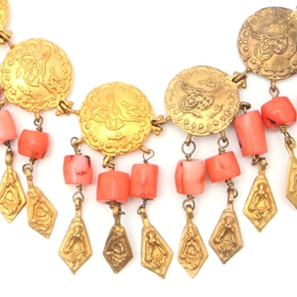 Clementine Necklace. 7inch 18K Gold Plated with Coral Color Stone.