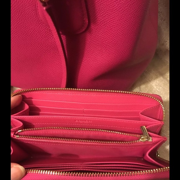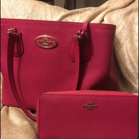Bought and was shipped on May 6th (2015) DIRECTLY from Coach online (email proof).Have used since purchase, excluding the last 7 months. It’s in great condition and is a sturdy leather bag. It’s not small, if you’d like dimensions please ask. Retail for both $433.00, tags kept in bag.Comes from a smoke and pet-free home. In absolute great condition, the quality is amazing. Gold detail on both the wallet and bag. Feel free to ask any questions!