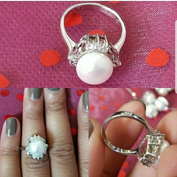 Jewelry set includes:-Necklace with pendant-Bracelet/Bangle 2.25 diameter (widest part)-Pair of earrings-Ring (Size 7)All pieces have pearls in perfect condition sorrounded by cubic zircona stones. 14 Carats. NEVER BEEN USED!!!***Bring all Offers. ***