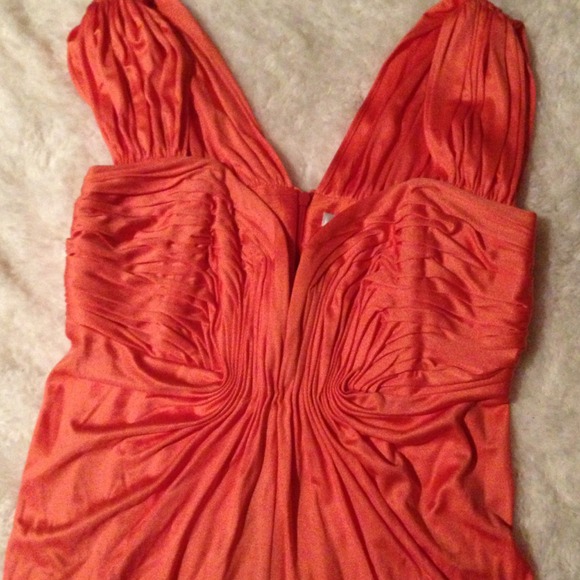 Beautiful Grecian style 100% silk top in coral. Size: petite/small. Never worn. **negotiable**