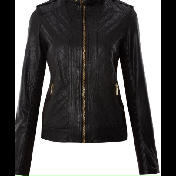 BNWT Michael by Michael Kors leather quilted jacket.Dressy with gold detail button and zipper with MK initials.My jacket design omitted the collar belt which looks better in my opinion.More elegant.