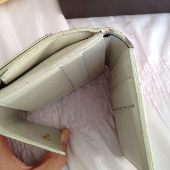 100% Authentic.My first Louis Vuitton Wallet. Color white. Signs of wear but still got plenty of life left. The price has reflected the condition. Purchased at Holt Renfrew Toronto back in 2006. I can not locate the date stamp.