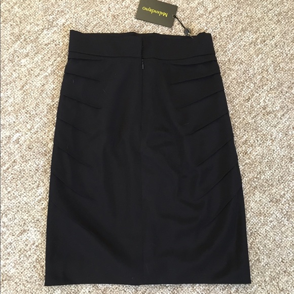 Malandrino straight black over the knee skirt with rouching detail sz 42! Fits true to size . New with tags – retails for $700! Such a steal! Zipper back closures – perfect for office to night apparel