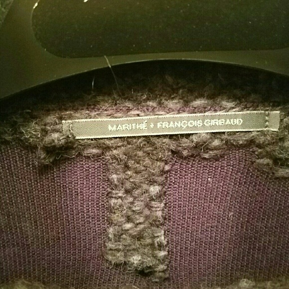 Very avangarde deep purple with fashion foward design girbaudauthenticwomen sweaterfrench size 38Italian 42 and us translateto 4but runns small for us size 4exact masures are length24 inch sholder 15 sleave 25 chest 13 inchvery light in weight42 %polyamide38 %wool 10 % mohair 7% rayon3% cashmere fits like comfortable small