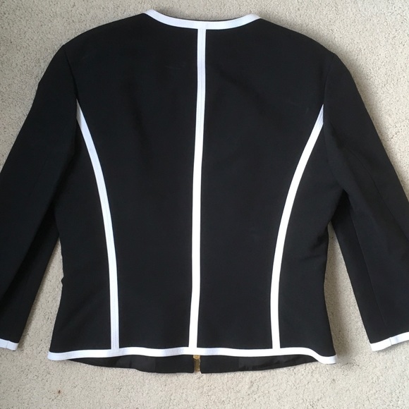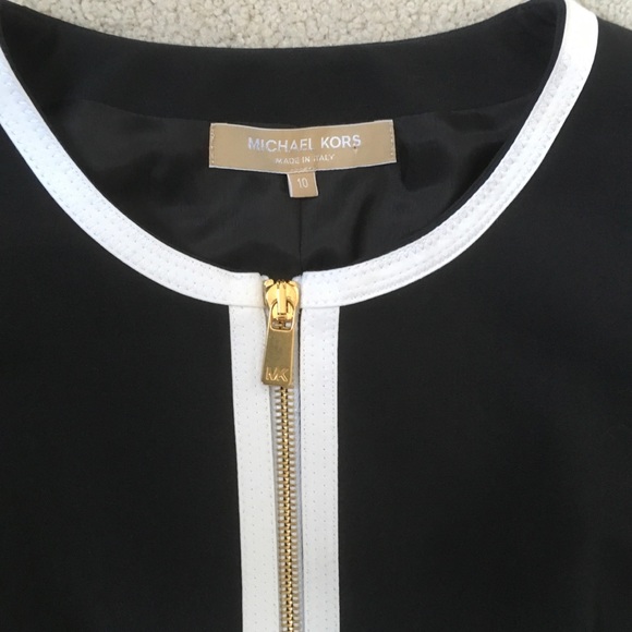 Michael Kors black with white contrast trim jacket. 3/4 length sleeves and gold zipper. Fully lined. New without tags, never worn. Size 10. 100% cotton exterior. Perfect for work or a night out.