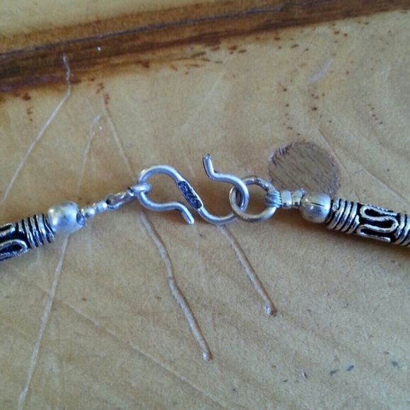 A beautiful “one of a kind” peice! This is believed to be antique, but I do not have paperwork to proove it & the .925 clasp & rings are newer do to the origionals being damaged. Made of Sterling Silver & genuine Turquoise. I’m unsure of the age but it’s been with me since childhood & I’m 40! Comes in sued drawstring bag wrap.