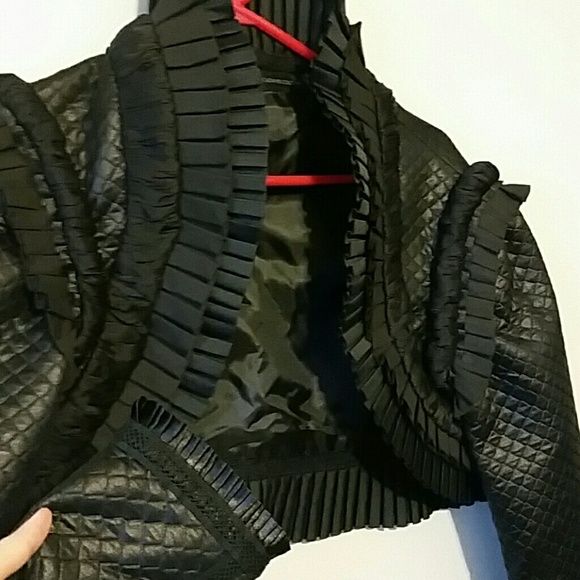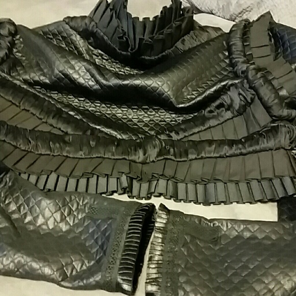 NEW Cadaver Couture custom bolero jacket cosplay goth , never worn, perfect condition, this jacket is amazing!! Open in front , custom designed thumb holes, impeccable details on this! Handmade/custom made ! Think shiny black quilted like material, lined, satin ribbon, lace, various other mixed materials on this great custom jacket!!