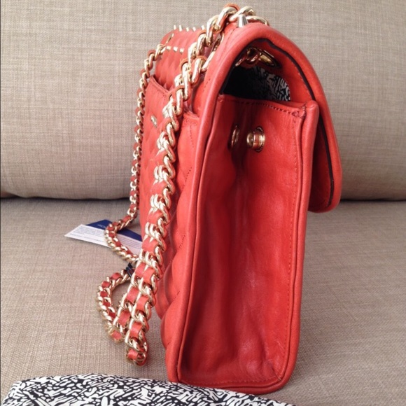 New with tag! Rebecca Minkoff studded and quilted ‘ affair’ shoulder bag. Color bittersweet. Leather. Measurements: 11.25*8*3 inch. Strap had somewhere worn away, otherwise, no defects. Coming with dust bag.
