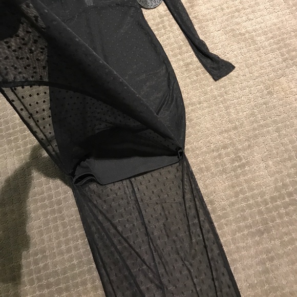 Nookie Wink maxi dress in black with plunge neckline. Hidden zipper in back and side slits. Made of polyester, spandex and nylon. Beautiful on.mew. Tags on.