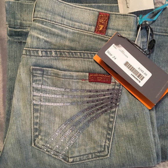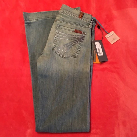 Versatile in both fit and style, the 5-pocket Dojo’s natural rise hugs the hips and loosens slightly through the thigh to widen into a trouser leg and wide leg opening. The Dojo’s signature “7” swoosh design is embroidered on the back pockets. The medium blue denim of Baton Rouge has subtle fading and light whiskering. Brushed silver hardware adds a touch of edginess to this look.Dojo signature “7” stitching on back pockets w/ crystals Cotton/Elastane