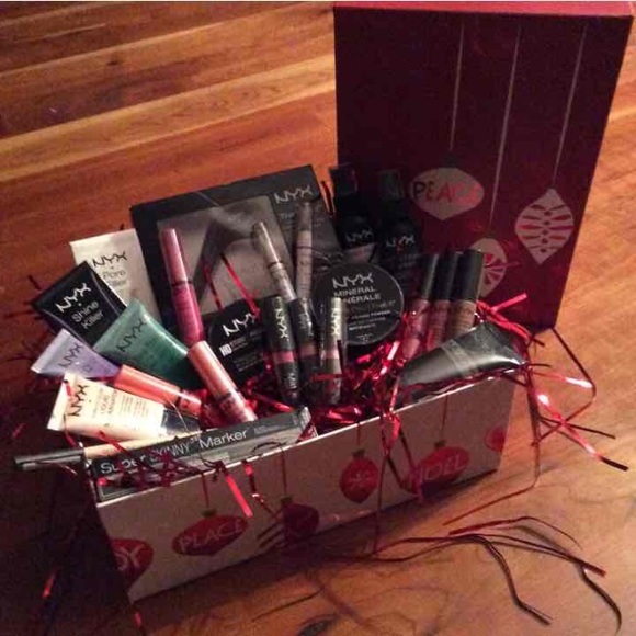 Huge deal.. Way below retail!matte lip creams in colors:MilanTokyoLondonButter gloss:Vanilla cream pieStrawberry parfaitApple strudelMatte lipstick:Nude diaphaneShocking pinkML07 (forgot name but it’s # 07)NYX jumbo pencils:MilkBlack beanAlso includes:Pore fillerShine killerPhoto loving primerSet it don’t fret it powderHD finishing powderLiquid illuminatorNYX wonder pencilQ10 Tea tree Dewy finishing sprayMatte finishing sprayThe curve linerSuper skinny liner