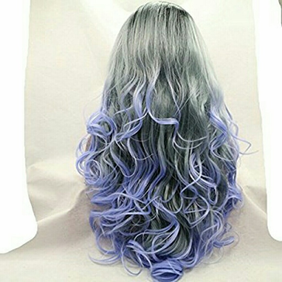 Ombre Black Gray Purple Laceftont Wig 24-26 inches