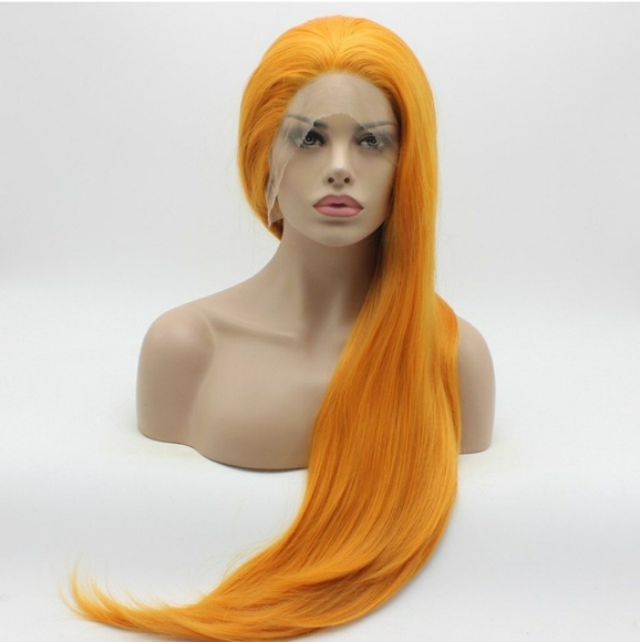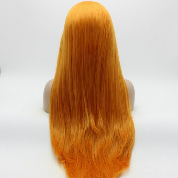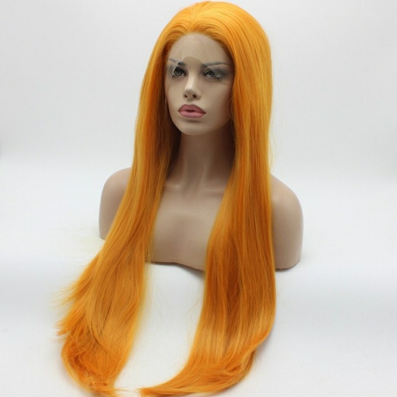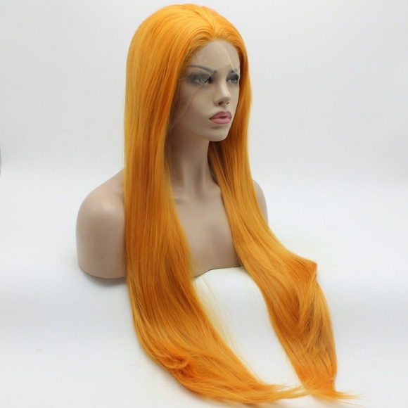 Straight, 30inch, orange, lace front wigFull, thick, heavy densityHalf hand tied lace front wig, free style, you can part it anywhere you want.High quality, heat resistant fiber, you can use heat on it to restyle.No tangle no shedding, smooth, soft, silky.ap4899