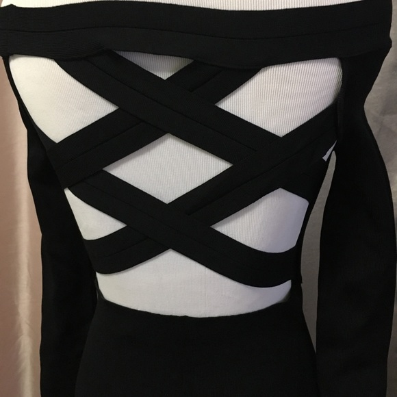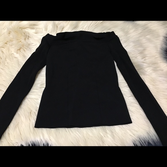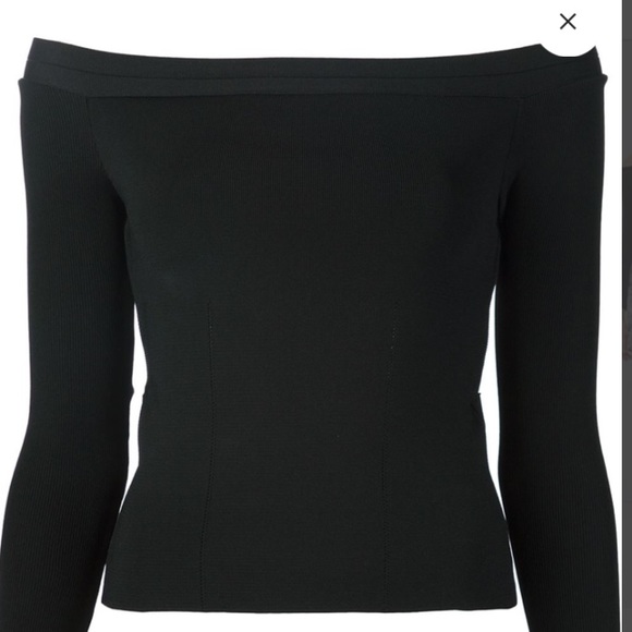 Authentic Oscar de la Renta Off the Shoulder Top in Black. – size S (also in ) 100% virgin wool. Made in France. Dry clean only. Stretch knit fabric. Lattice detail at the back. NWOT