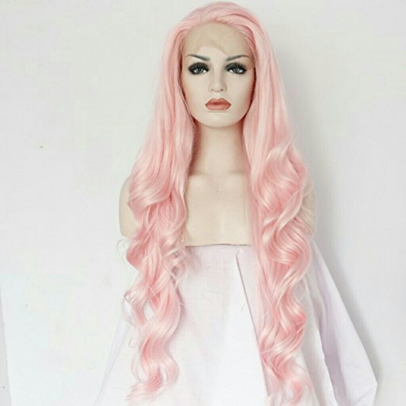 Item name—Handmade Women Synthetic Lace Front Wigs Cheap Heat Resistant Natural Long Wavy Fiber Hair Pink ColorCap Construction—Lace Front CapMaterial—Pretty Natural and soft,100% heat resistant synthetic fibersHead circumference—Adjustable band with hook inside.You can adjust it by yourself