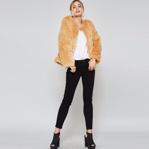 Pre-order. Well fitted vegan fur jacket – Tan