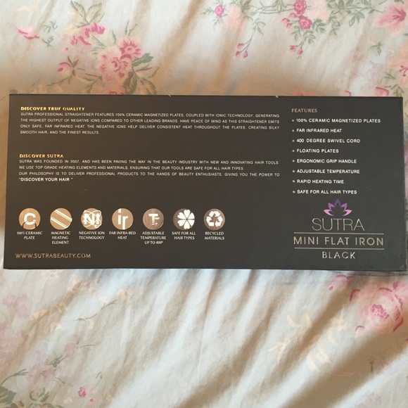 Comes with lifetime warranty! Discover the beauty of your hair with the versatile Sutra Mini Flat Iron. Our dynamic styling tool is designed with 100% solid ceramic plates that distribute heat evenly across the iron. Even heat distribution eliminates damaging hot spots and straightens the hair with one single pass. The Sutra Mini Flat Iron also uses FAR Infrared Technology, a form of heat that mends broken hair cuticles, resulting in softer, healthier and shinier hair.