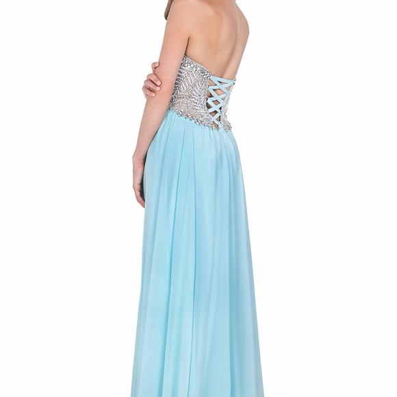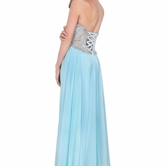 Make them stare at you by wearing this graceful1611P0207 from Terani Couture. The strapless bodice has a sexy sweetheart neckline and dazzling beaded details in a curve-enhancing pattern. This beautiful evening garment offers a gorgeous skirt that drapes into a split full-length, finished with a dramatic sweep train.Features of Terani Couture 1611P0207 include: Deep sweetheart neckline Sparkling beadwork on the bodice Flattering A-line silhouette Floor length skirt with cascading gather