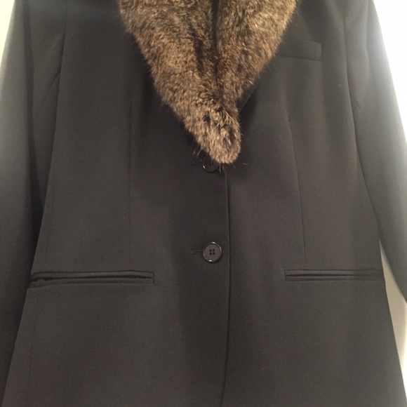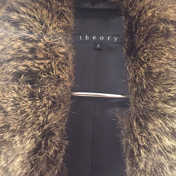 NWT. Never worn. Great Condition. Theory Kiersten Blazer w/Fur, Sz 2, Black, Chateau fabric. Tag included. Originally purchased from Saks Fifth Avenue.