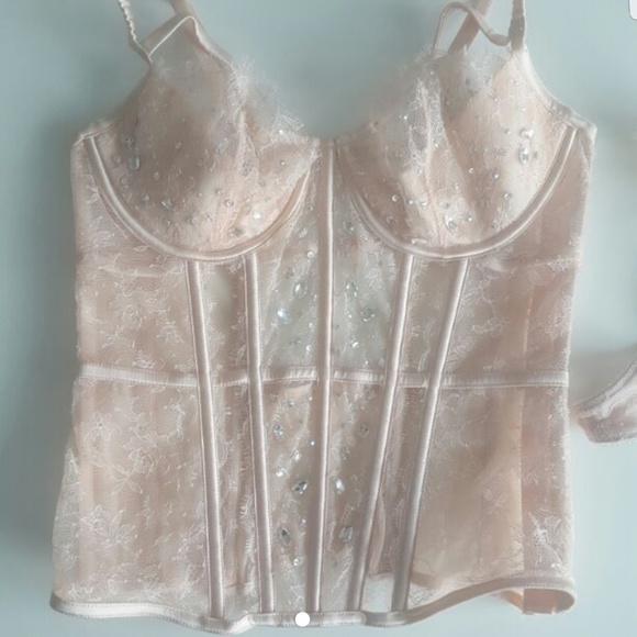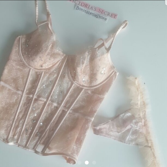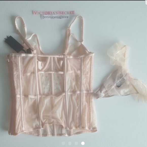 ********* VICTORIA SECRETS? **********ABSOLUTELY STUNNING !!!!**********WILL NOT SEPARATE **********1. Victoria’s secret DESIGNER COLLECTIONSize 34DRetails$328plus tax CORSET BUSTIERRHINESTONES REMOVABLE GARTERS ADJUSTABLE STRAPS SIZE ZIPPER CLOSURE SMALL thong NWT RETAILS$ 68 NO TRADESNO HOLDSNO OFFERS