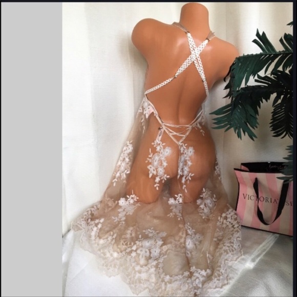Victoria’s Secret M,L EMBROIDERED NUDE WHITE RARE BRIDAL SHEER SEE THROUGH GOWN