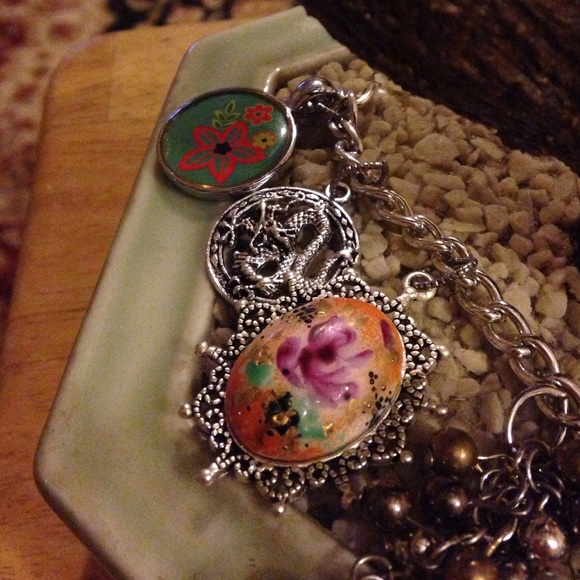 Amazing charms porcelain tusk horn heart turquoise dream catcher beads dragon and mor silver plated