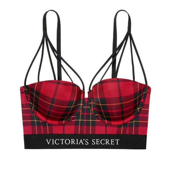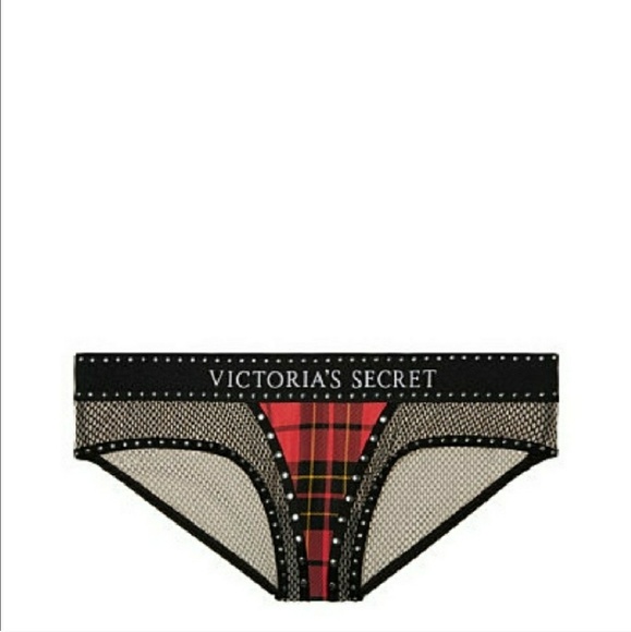 VS X BALMAIN Plaid Strappy Long Line Bra and fishnet cheeky panty. Brand New, sold out online.Bra is size 34 DPanty is size smallThis bras sizing runs different than regular VS bras. It’s more of a European fit.
